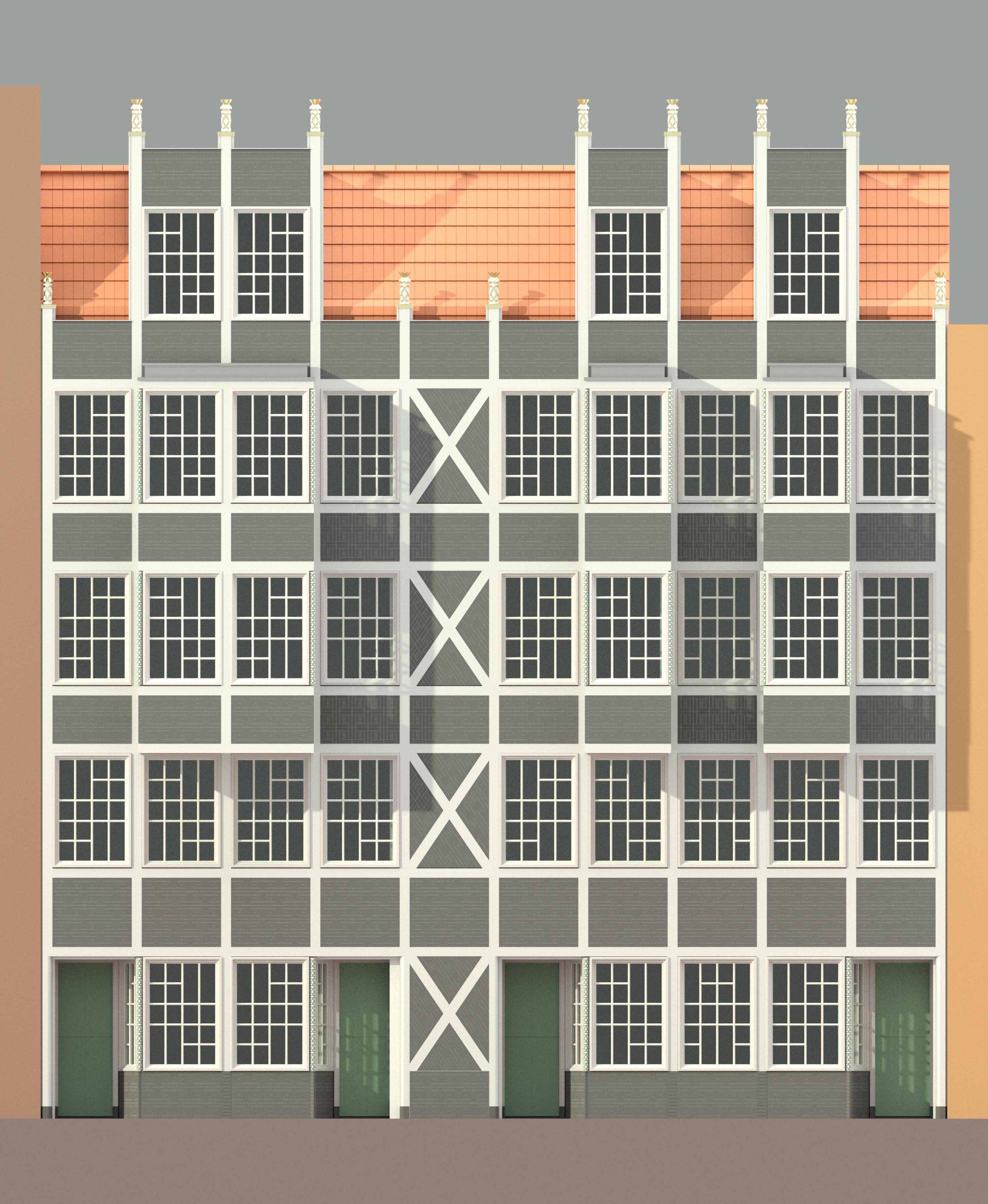 Design studies concerning building facades in a inner city and of courtyard houses of a 'hofje' with a historical connection fit for modern times
